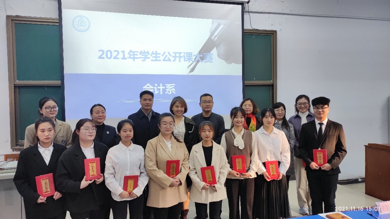 学生公开课大赛结合学院要求,是会计系教学改革的一次创新,是三课方案具体实施内容之一。使同学们通过相互学习和交流,在对话中实现资源共享,提升学习能力。以赛促教、以赛促学,提高人才培养质量。
