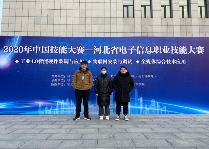 本次大赛由河北省工业和信息化厅、河北省人力资源和社会保障厅、河北省教育厅共同主办。大赛以“立足行业,结合实际,实战演练,促进就业”为宗旨,旨在推进信息化与工业化深度融合,培养适应电子信息产业发展和信息化建设需要的技能人才。来自全省企业、科研院所、中职和高等院校的60支代表队近180名选手参加大赛。由王中石、史佳顺、王启超组成的智慧供应链创新创业项目组和庞海杰、耿晓泽、刘凯源组成的工业 4.0 智能硬件装调与应用项目组以及徐福佳、孟宪博、裴晓瑶组成的全媒体综合技术应用项目组,在李福亮老师的带领下,认真准备,沉着应战,取得了佳绩,为星空争得了荣誉。
