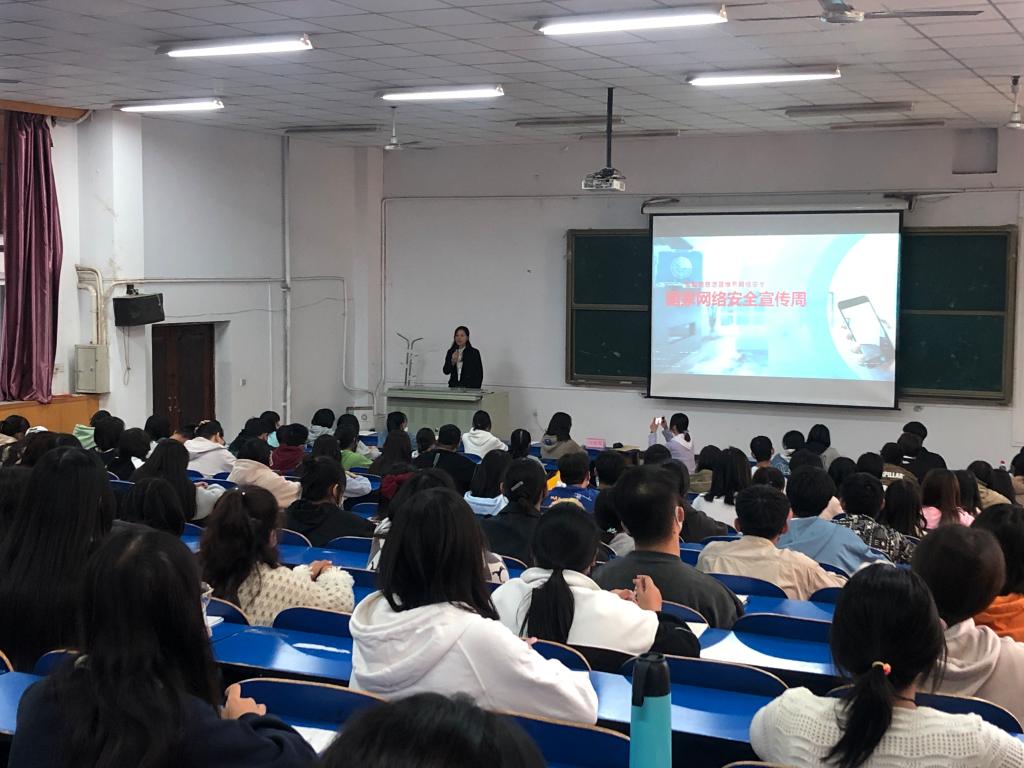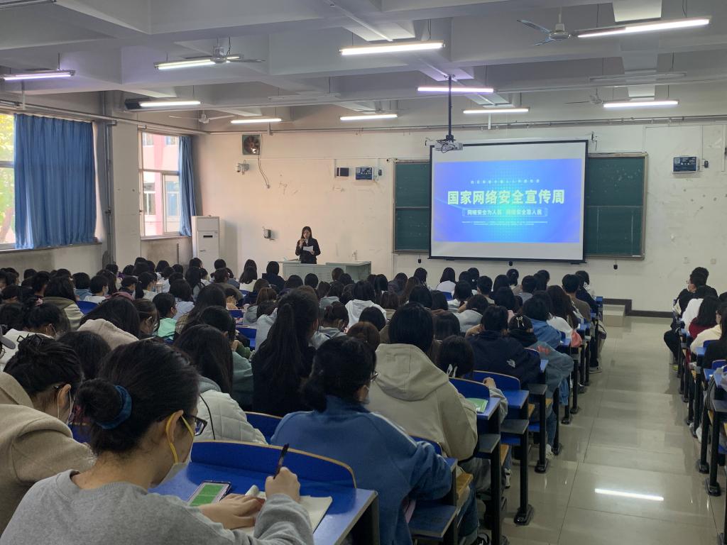 为宣传贯彻习近平总书记关于网络强国的重要思想,加强《中华人民共和国网络安全法》等法律法规的宣传,普及网络安全知识,引导师生在“学网、懂网、用网”中不断提升网络安全意识和综合防护能力。实践教学部在南校区三教205和西校区西阶梯教室组织各系大一新生代表近1000余人,开展2022年国家网络安全宣传周校园日活动。管理系范丽波和商务系刘亚宁两位老师一同出席本次活动。