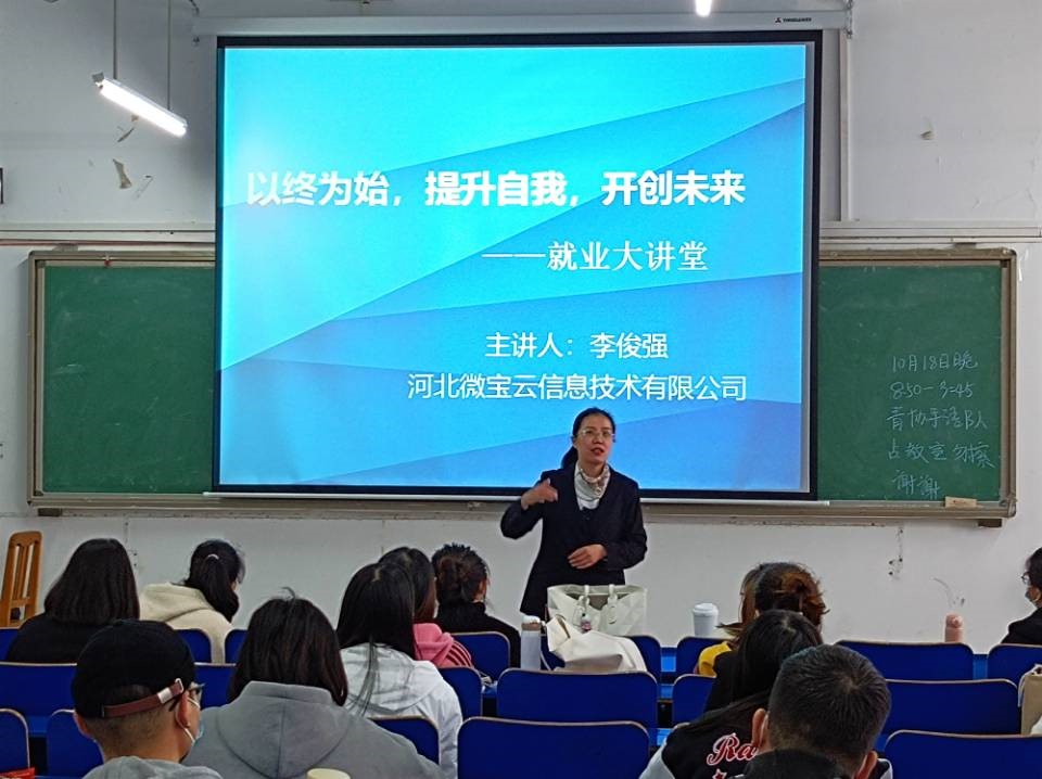 为进一步推动就业工作,帮助学生适应就业形势、转变就业观念、增强就业意识、提升就业能力,1019日上午,经济系邀请河北微宝云信息技术公司总经理李俊强在二教218举办以终为始,提升自我,开创未来就业指导专题讲座。系党总支书记蔡杨出席活动并讲话,副书记郑庆国主持,毕业班辅导员和毕业生代表70余人参加了此次活动。