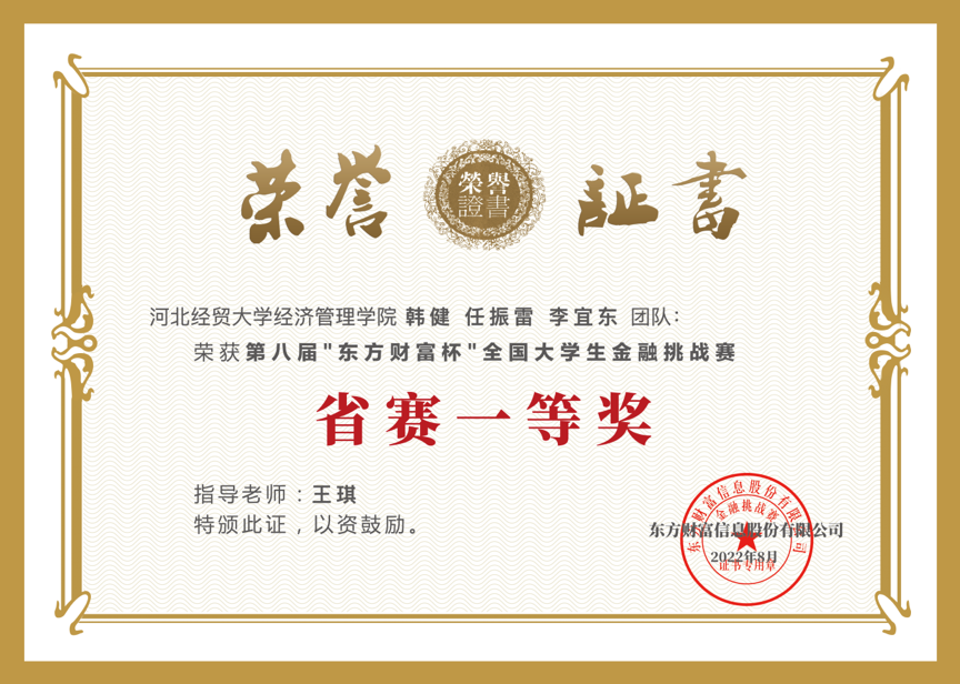 近日,第八届“东方财富杯”全国大学生金融挑战赛圆满落幕。经过三个月的激烈比拼,星空代表队最终获得省赛一等奖1项、二等奖3项、三等奖5项,参赛成绩创历年新高。