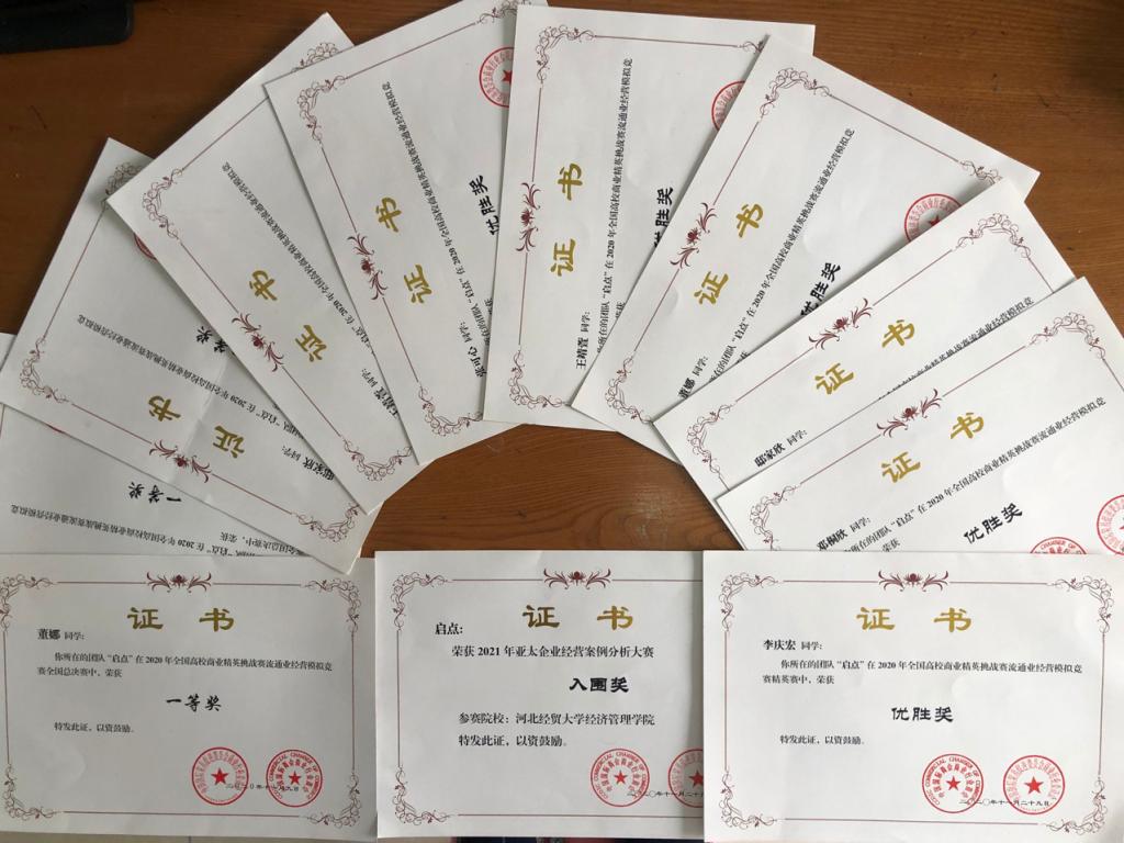 近日,全国高校商业精英挑战赛流通业经营模拟竞赛落下帷幕,经过激烈角逐,层层选拔,星空两个代表队荣获全国总决赛一等奖。其中由李庆宏、邓桐欣、王静萱、邸家欣、董娜、张可心组成的“启点”队,代表星空赴广西柳州参加了2020年全国高校商业精英挑战赛流通业经营模拟竞赛全国精英赛,在精英赛中斩获十强,取得争霸赛资格,并在争霸赛中荣获优胜奖以及2021年赴新加坡参加亚太企业经营案例分析大赛入围奖。星空获得最佳院校组织奖。