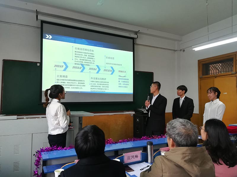 大赛分抢答、PPT展示及导师提问三个环节进行,共有五个团队参加大赛。赛前,董丽英、王慧霞对每个团队都进行了相关的指导,各团队在比赛过程中以多种形式、声情并茂地对案例的内涵进行了深刻的剖析,其中,“审时渡势”团队以“问诊”的形式,把脉乐视企业的报表审计,对该公司财务存在的问题进行了分析,并提出了相应的对策;“虎虎生威”团队以幽默风趣的情景剧表演,运用“雅百特公司财务舞弊”案例,结合公司内部和外部进行了综合分析;“助力团队”通过“找问题”、“分析原因”、“提出问题”层层递进,对我们熟悉的“加加食品”的市场和财务状况进行分析。最终“助力团队”以简练的语言、新颖的讲解形式,受到评委们的一致认可,夺得本次大赛的桂冠。