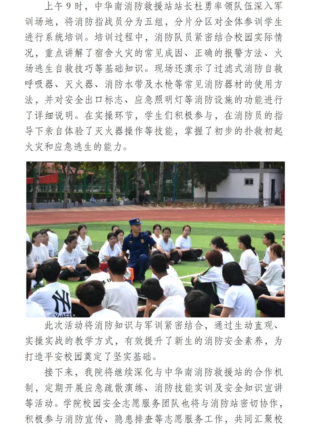 【军训简报】消防知识融入军训 夯实校园安全基石