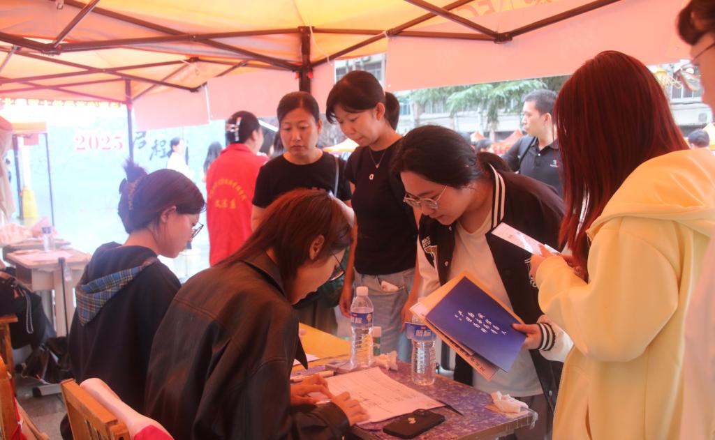 雨中,各系书记、辅导员早早到岗,指导新生报到工作。志愿者们穿梭在校园的各个角落,主动为新生与家长指引路线、搬运行李、解答疑问,从报到点至宿舍区形成了一条高效而温暖的“绿色通道”。志愿者们忙碌的身影和热情的笑容,成为秋雨中最动人的画面,也让初来乍到的新生与家长倍感亲切。