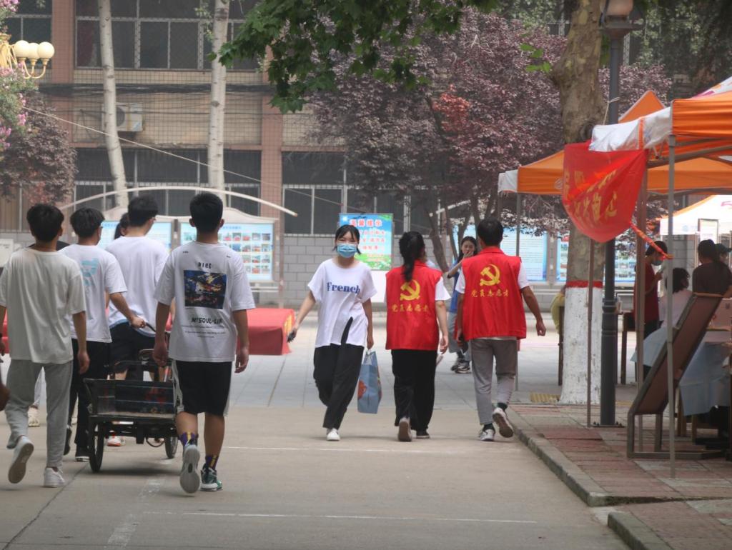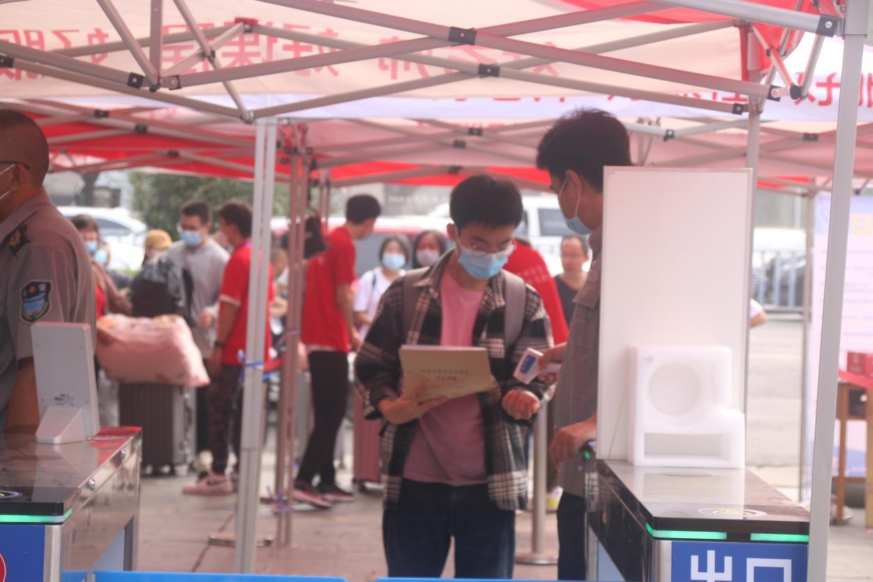 报到现场开设新生入校通道和行李通道,志愿者们在通道口热情迎接,为新生提供“一对一”服务。新生通过测温、展示健康码和行程码,并通过人脸识别后进入校园;行李物品通过行李通道进入校园,有效解决了行李物品多、入校速度慢等问题。全体迎新工作人员按照工作方案细致落实、相互协作,以高度的热情和周到的服务,确保迎新工作有序进行。学院还在图书馆广场前铺设了一条“成长之路”,寓意新生们走过小学、初中、高中等重要人生节点后,即将在这里踏上新的征程。