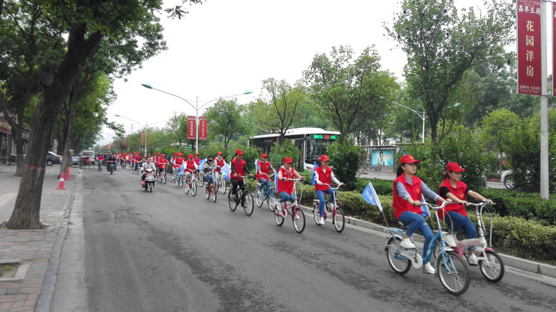 志愿者们精心设计了以学院为起点,裕西公园为终点的骑行路线。27日清晨,在交警的协助下,志愿者们身着代表志愿者精神的红马甲和小红帽,一路骑行秩序井然。途中,志愿者们还用带有环保标志的背贴向行人宣传低碳健康的生活理念和绿色环保生活方式。到达终点后,志愿者们还在公园内捡拾游人丢弃的垃圾,并向市民们发放环保宣传册,讲解低碳生活的重要性,用实际行动感染市民。市民们纷纷表示今后要注意生活中的细节,从自身做起,低碳生活爱护地球。活动结束后,志愿者还通过微薄、微信发布活动心得,进一步宣传绿色骑行的环保理念,呼吁更多人加入到低碳生活的队伍中来。