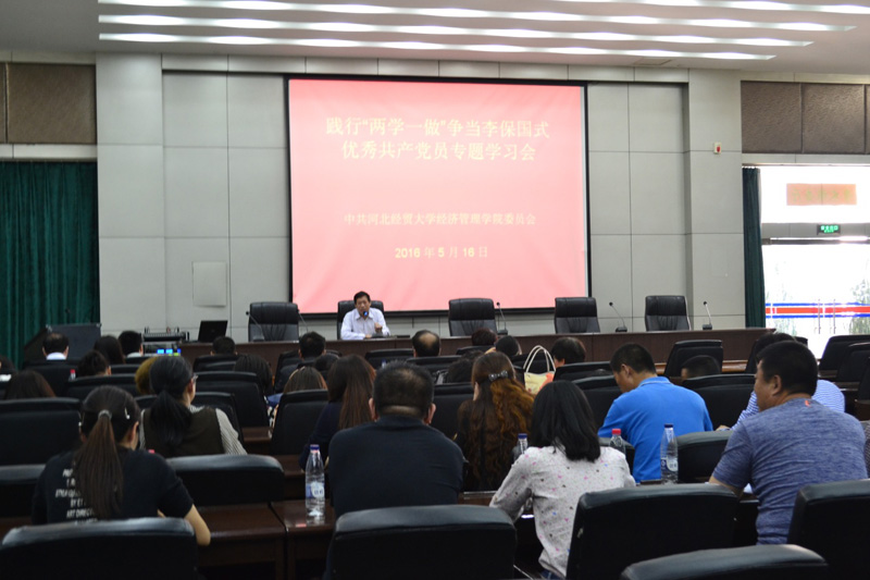 5月16日下午,XK星空践行“两学一做”系列活动之一,争当李保国式优秀共产党员专题学习活动在学院图书馆报告厅举行。学院党委书记张进良、副书记刘会娟,各系党总支书记,各党支、学生支部书记参加学习。