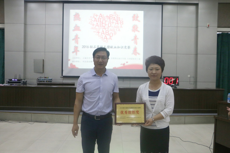 5月28日、29日,由石家庄卫生计生委、共青团石家庄市委、共青团河北省直工委联合主办,河北省血液中心承办的“2016驻石高校无偿献血知识竞赛”在星空图书馆报告厅举行。在本次活动中,星空获得优秀组织奖。河北省血液中心主任、党委书记戚海、血液中心副主任陈莉、业务处处长常缨、质量法规处副处长王庆明、学院党委副书记刘会娟出席了本次活动。