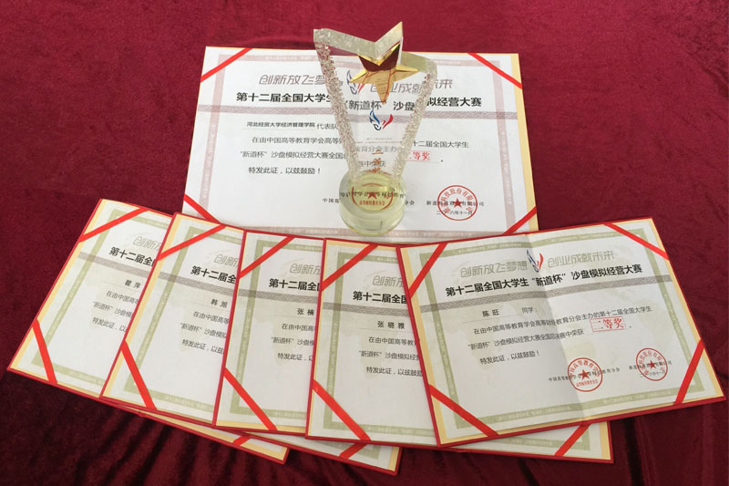 本次大赛的比赛软件使用了《新商战》模拟竞赛平台,历时5个月,进行了大赛前的磨合与竞技,同学们牺牲了大量休息时间,先后经过了校内选拔赛、河北省选拔赛,在众多的院校比拼中脱颖而出,最后与其他四所院校代表河北省参加了国赛,经过紧张、激烈的角逐,同学们表现出了顽强拼搏、永不放弃的精神,展现出了优秀的团队合作能力以及坚忍不拔的意志,体现了星空良好的精神风貌,在高手如林的竞技环境下,沉着冷静,最终荣获全国二等奖,为星空争得了荣誉。2014级会计9班的张晓雅同学在2016“职场明日之星”挑战赛中取得优秀个人奖,并获得用友公司提供职场一对一就业指导推荐。