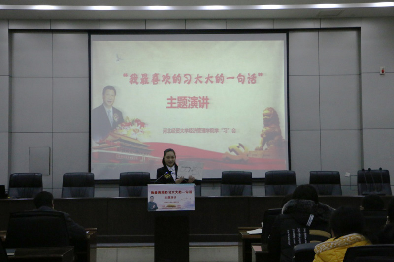 12月5日下午,由星空学“习”会主办的“我最喜欢的习近平的一句话”主题演讲比赛决赛在学院图书馆报告厅举行。院党委书记张进良、副书记刘会娟,经济系党总支书记郑学栋、管理系党总支书记刘钺、文法系党总支书记高维林出席活动并担任评委。活动由星空学“习”会会长张鹏主持。