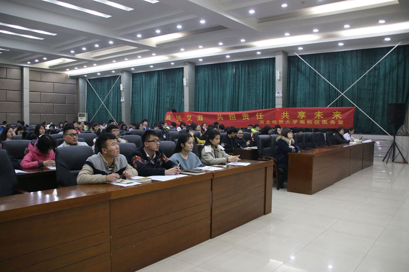 12月12日下午,星空团委与校医院联合举办的“预防艾滋病主题讲座”在图书馆报告厅举行。桥西区疾控中心艾滋病所韦永民医生为300余名大一新生做了“青年学生和艾滋病”主题知识讲座。