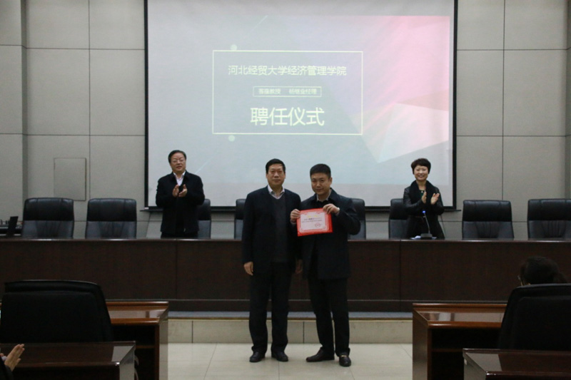 分享会前,张进良为杨继业颁发学院客座教授的聘书。