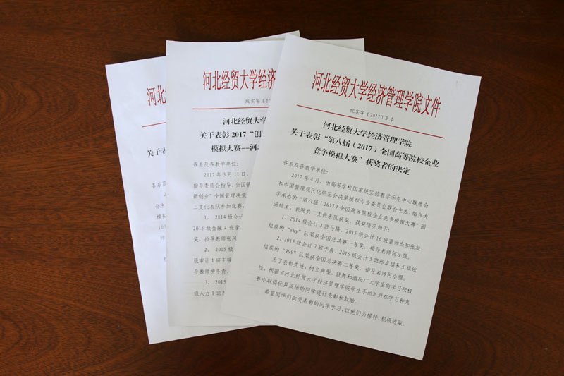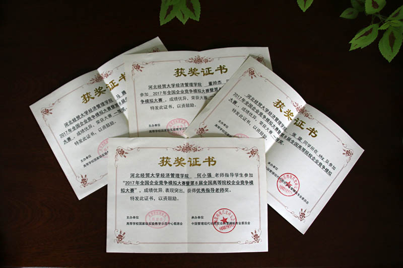 本次受表彰的团队均来自实践教学部ERP俱乐部,他们抓紧课余时间,认真设计,反复修改,最终凭借过硬的专业技术和优秀的协作能力取得了丰硕的成果。今年4月,在“第八届全国高等院校企业竞争模拟大赛”上,星空派出的两支代表队分别获得全国总决赛一等奖和二等奖;今年3月举办的“2017‘创新创业’全国管理决策模拟大赛——河北省赛”上,星空派出的三支代表队分别获得两个省赛一等奖,1个二等奖;在2016年12月“华北区第六届高等院校企业竞争模拟大赛”上,星空代表队获得大赛三等奖,学院在本次竞赛组织中表现突出,获优秀组织单位奖。