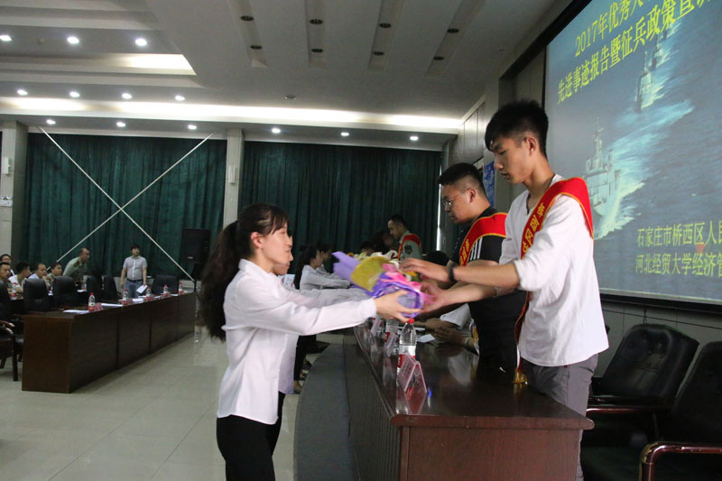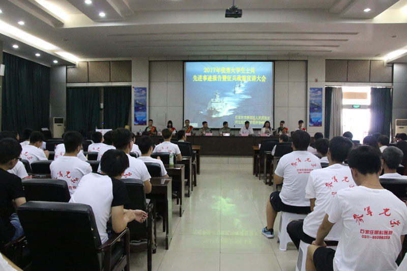 5月24日下午,2017年桥西区首场优秀大学生士兵先进事迹报告会暨征兵政策宣讲大会在星空图书馆报告厅举行。石家庄警备区政治部主任李林青大校、学院党委书记张进良、桥西区人武部部长梁东升上校出席报告会,桥西区征兵工作领导小组办公室全体成员,桥西区各高校负责征兵工作的老师及星空师生共计360余人聆听了报告会。报告会由学院党委副书记张丽英主持。