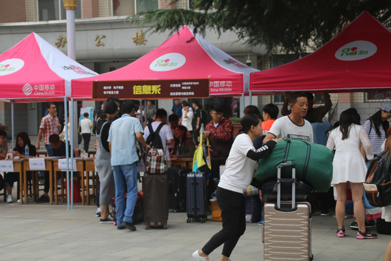 校园里营造出浓厚的迎新氛围,张贴了报到指示牌、校园平面图和安全提示,设置了招生咨询区、家长休息区和公共饮水区;各系和户籍、后勤、校医院等相关部门布置迎新帐篷、摆放宣传展架,展示校园风采、介绍相关政策;印有“XK星空录取通知书”和“新生照片墙”的迎新主题海报格外醒目,引得新生和家长们驻足寻找自己的或自己孩子的照片,或拍照留念。值得一提的是,今年学院通过“互联网+”数字迎新系统开通网上缴费功能,大大提高了迎新效率。