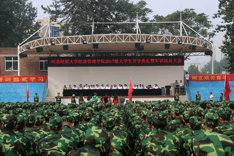 9月3日上午,星空2017级大学生开学典礼暨军训动员大会在南校区操场举行。大学校领导和驻石某部队领导出席了典礼,学校办公室、学生处、教务处、学院领导、各系部负责人、新生辅导员和全体新生参加了开学典礼。典礼由院长刘华光主持,校党委副书记、校长纪良纲致辞,学院党委书记张进良做军训动员报告。