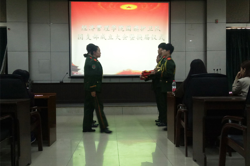 10月23日,星空国旗护卫队团支部成立大会暨国旗护卫队换届仪式在图书馆报告厅举行。院党委副书记张丽英、团委书记陈玲、学生工作部部长杜兰柱、副部长王敏、刘佳出席活动,国旗护卫队第七届和第八届全体成员以及各系学生代表参加了此次活动。