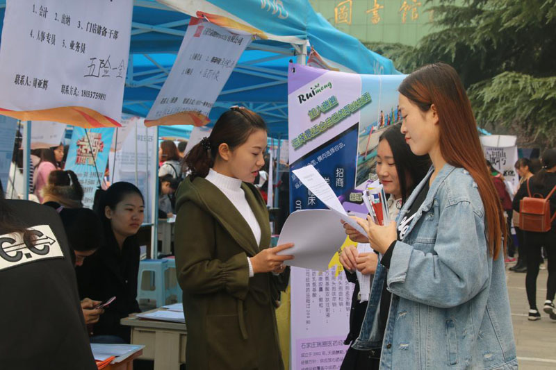 本次招聘会共邀请了北京、上海、天津、山西以及河北各地市等企业近300家,包括今麦郎公司、京东、英孚教育、上海链家网等一些知名企业,共提供就业岗位3500余个。较往年相比,教师、外贸业务员、Java工程师、网络工程师、会计等成为今年的热门职位。