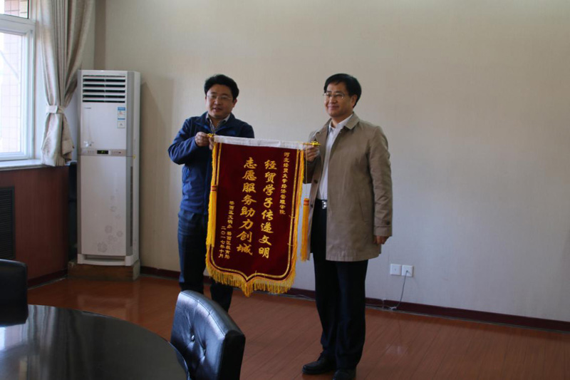 11月10日上午,桥西区文明办、教育局向星空赠送“经贸学子传递文明志愿服务助力创城”锦旗,以感谢星空志愿者在石家庄市创建全国文明城市活动中给予的支持和帮助。大学校党委常委陈亮、省教育厅德育研究中心副主任蔡杭州出席了活动,院领导班子和相关部门负责人参加了本次赠旗活动。