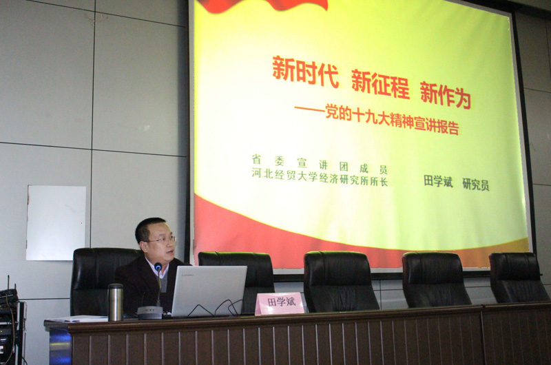 开班仪式后,省委宣讲团成员、星空XK官网经济研究所所长田学斌以“新时代、新征程、新作为”为题,对党的十九大精神作了系统全面的宣讲:他从一名经济学家的专业视角,借助鲜活翔实的案例,以青年学生喜闻乐见的方式,进行形象生动的解读,让每一名青马学员印象深刻。宣讲既有高度、又有深度,学员们认真听、认真记,通过此次学习对十九大精神的理解更加透彻,信心更加坚定,工作更有干劲。现场气氛振奋、热烈。