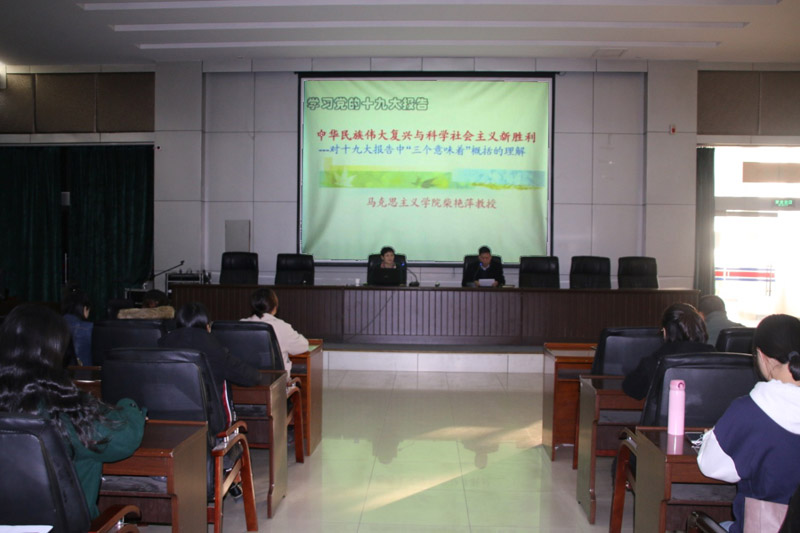 11月22日下午,星空XK官网马克思主义学院党委书记、院长柴艳平教授受邀,为星空三百余名师生代表作题为《中华民族伟大复兴与科学社会主义新胜利---对十九大报告中“三个意味着”概括的理解》的专题讲座。活动由学院党委书记张进良主持。