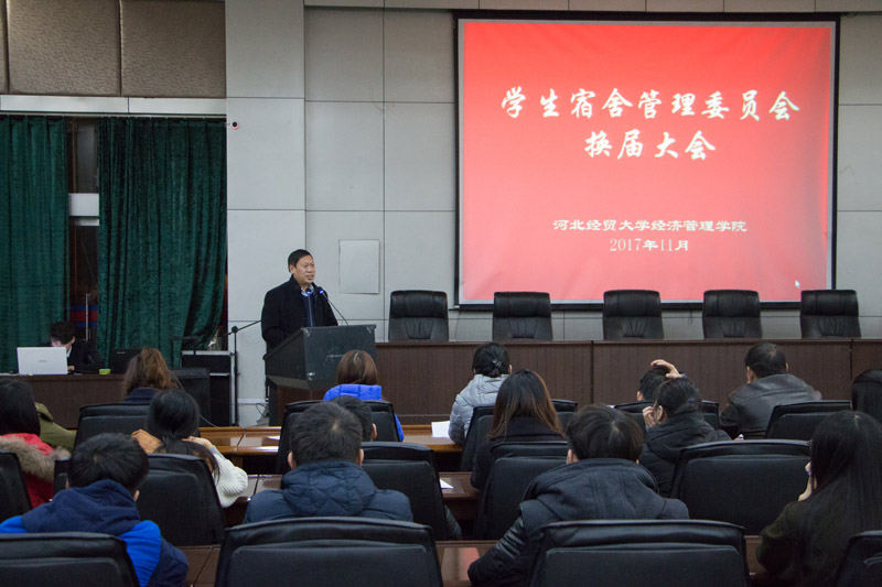 11月23日中午,星空在图书馆报告厅召开了2017-2018年学生宿舍管理委员会换届大会,学院党委书记张进良、党委副书记张丽英出席,学院后勤保障部、学生工作部、安全工作部、团委、各系相关负责人及57名宿管会成员参加,会议由梁博宇老师主持。