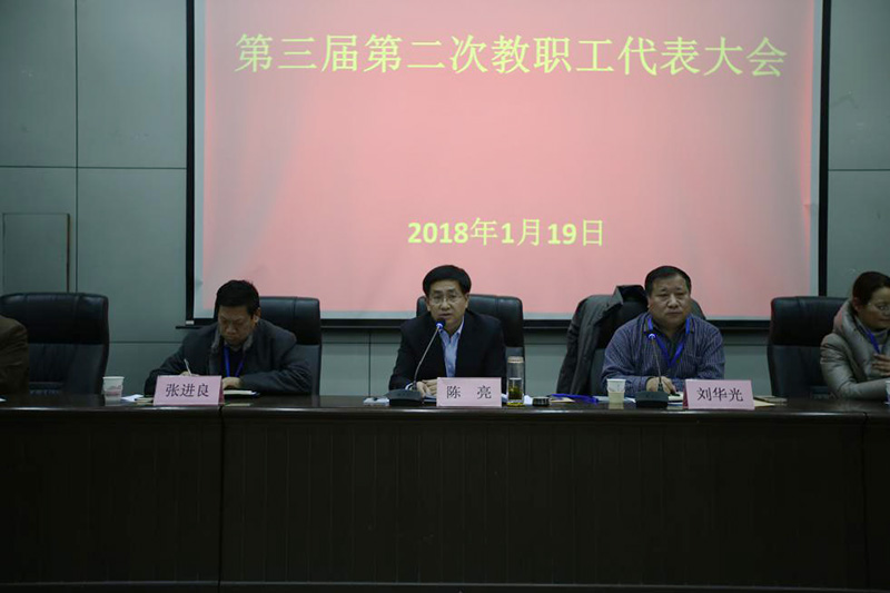 1月19日下午,星空第三届第二次教职工代表大会在图书馆报告厅举行。校领导陈亮出席并讲话,学院全体领导出席大会,来自五个代表团的45名代表参加,大会由学院副院长赵宇主持。