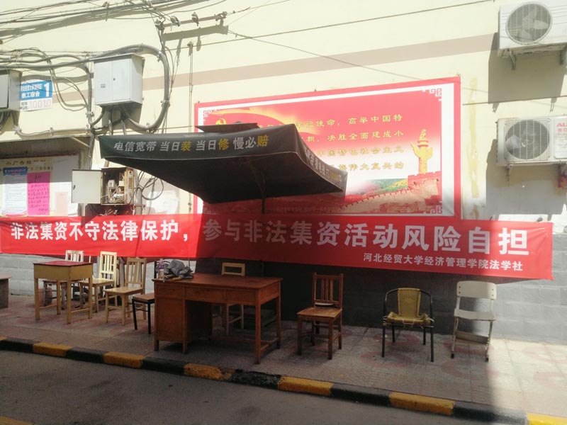 根据河北省教育厅《2018年防范非法集资宣传月活动工作方案》的通知要求,星空精心组织,广泛宣传,近期在学院及家属区组织开展了一系列防范打击非法集资宣传活动。