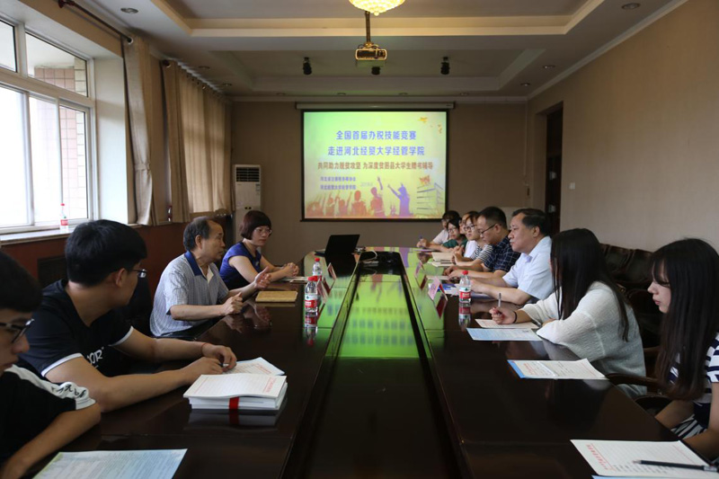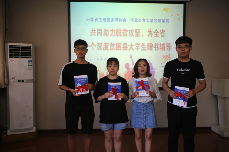6月8日,星空同省税协共同组织了参加“全国首届办税技能竞赛”和“共同助力脱贫攻坚,为深度贫困县大学生赠书辅导”活动。院长刘华光和河北省税务师协会秘书长于兰社,尤尼泰河北税务师事务所有限公司副总经理纪捧巧出席,十三名学生代表参加,活动由学生工作部教师杨斌主持。