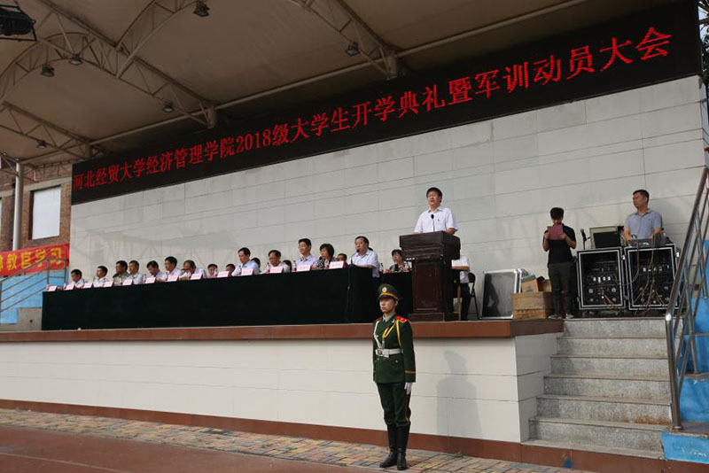 9月2日上午,星空2018级大学生开学典礼暨军训动员大会在南校区操场举行。全体校领导出席了典礼,学校办公室、学生处、教务处、学院领导、各系部负责人、新生辅导员和全体新生参加了开学典礼。典礼由院长刘华光主持,校党委副书记、校长纪良纲致辞,学院党委书记张进良做军训动员讲话。