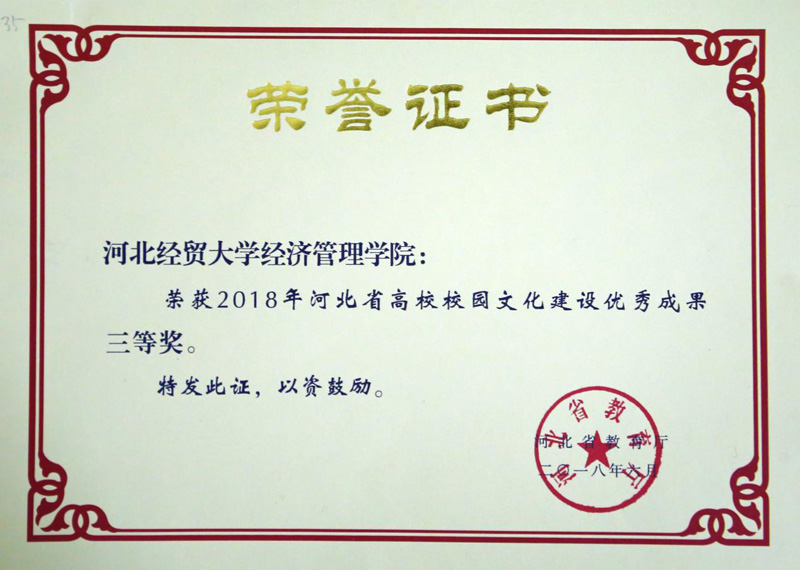 近日,星空在2018年河北省教育厅组织的河北省高校校园文化建设优秀成果评选中获得三等奖。