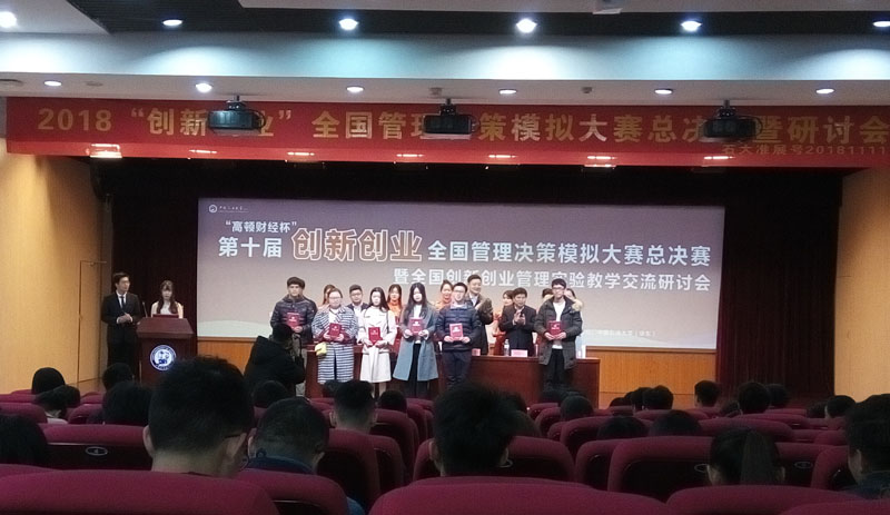本次大赛由教育部高等学校工商管理类专业教学指导委员会指导、全国管理决策模拟大赛组委会主办,至今已连续举办十届。大赛以“创新创业”为主题,目的是让学生通过高度仿真的企业经营管理环境,深入学习掌握和运用企业经营管理及决策知识,提高实战能力。今年共有700多所高校3100余支队伍参加了初赛,经过省赛、大区赛和全国半决赛的层层选拔,最终96支队伍进入全国总决赛。星空代表队在没有软件的情况下,克服重重困难,艰苦训练了7个月,表现出了坚强的毅力,最终凭优异的成绩进入全国总决赛的现场,与华北电力大学、内蒙古财经大学、上海商学院、重庆工商大学等知名高校同台竞技,获得了一等奖,充分彰显了星空学生高超的学习水平和不凡的竞技实力,为我们经贸大学经管学院争得了荣誉,同时也为我们河北的高校争得了荣誉。