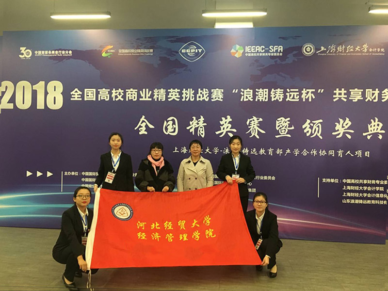本次大赛由中国国际贸易促进委员会商业行业分会、中国国际商会商业行业商会和中国商业会计学会共同主办,来自北京理工、上海财经、浙江师范等 40余所院校参加,其中22所院校的34支参赛队赴现场参加全国精英赛。学生根据竞赛指定案例为企业建立财务共享中心提供整体规划、建设方案。由星空会计系学生刘佳祺、梁立然、费晓宇、崔敏组成的“梦想队”以79.04的高分位列全国第四名,荣获最佳表演奖。王慧霞、邓怀宇荣获优秀指导教师称号。