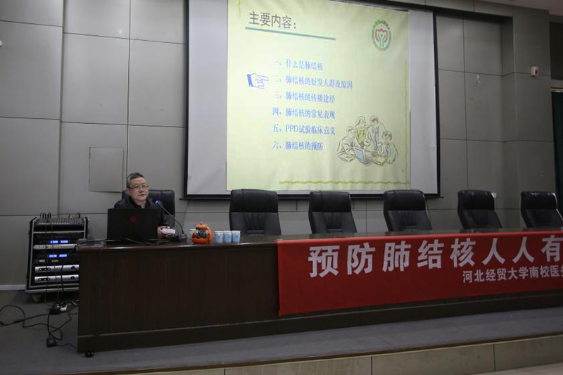 春季气候适宜,也为传染病的流行提供了条件,为防患于未然,保证学生能够以健康的身体状态投入到学习生活中,4月2日,校医院与团委在图书馆报告厅联合开展了结核病相关知识与防治方法的主题讲座,石家庄市第五医院王海滨主任主讲,300余名学生到场聆听。
