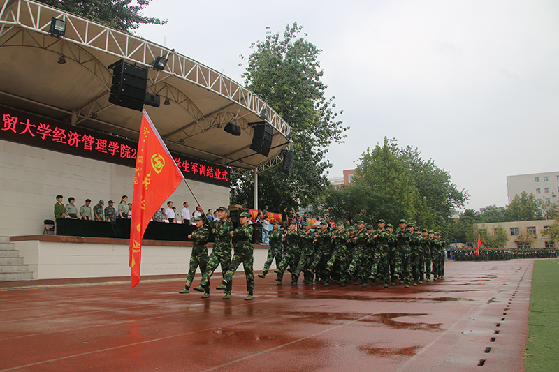 14点30分,在国旗护卫队铿锵的脚步声中,军训结业式正式拉开序幕。分列式表演中,全院新生6个连共23个方队精神饱满,迈着坚定的步伐依次正步经过观礼台,他们昂首挺胸,英姿勃发,步履坚定,神采飞扬,以整齐划一的步伐、刚劲有力的摆臂和清脆嘹亮的口号,展示出经管学子的精神风貌。