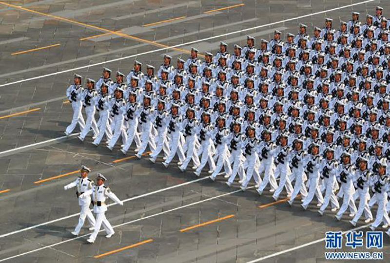 (海军方队通过天安门广场。 图片来源:新华社)