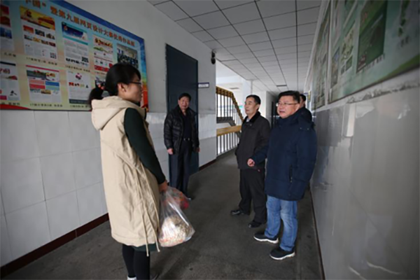 本网讯(记者 郑廷) 1月23日上午,新春佳节来临之际,副院长赵宇、鲁爱臣代表学院领导率领院办、安全工作部、南校区和西校区后勤保障部相关人员,看望慰问寒假期间坚守工作岗位的教职员工。