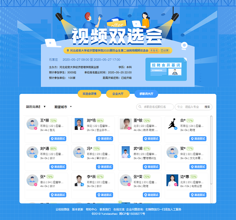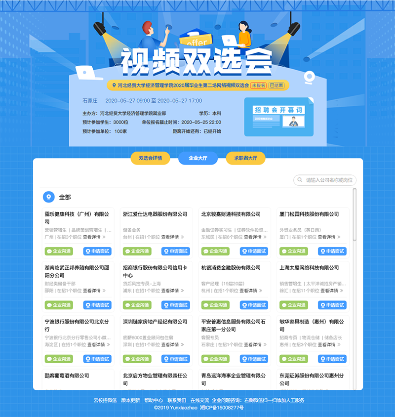 为持续推进学院毕业生就业工作,保障疫情期间毕业生顺利就业,星空于5月27日在成功举办了2020届毕业生第二场网络视频双选会。