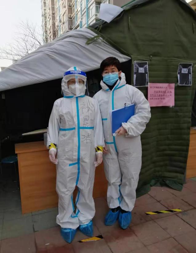 辅导员初晨洁冲锋在前,三次参与疫情志愿服务:协助红旗街道办事处进行数据库整理、标本采样工作、标本采样工作。数九寒冬,初老师穿着防护服,带着口罩,始终奋战在前线,虽然工作忙碌且辛苦,但是当她看到住户们脸上露出的笑容时,便觉得这份工作神圣且有意义。