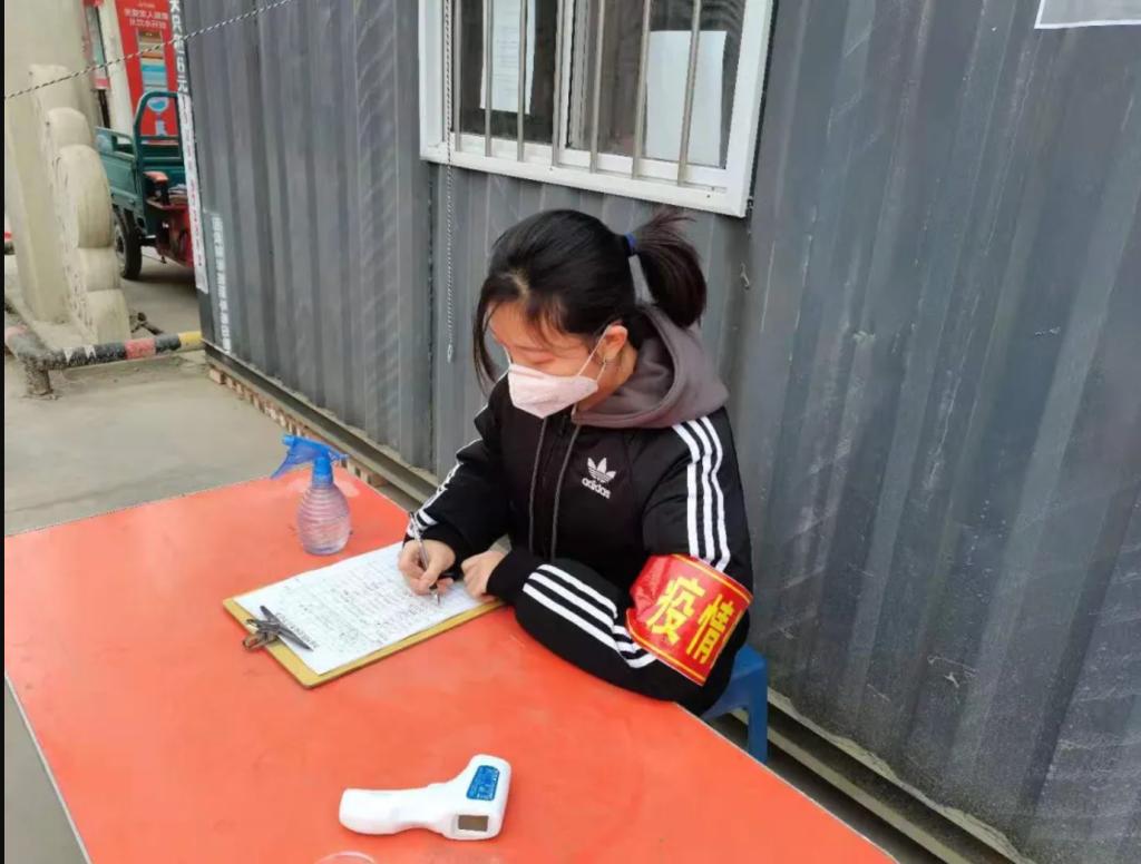 疫情期间,18英语1班窦梦圆在当地的村委会进行了志愿者报名,每天工作是在村口值班,进行非必要不外出劝返工作,严防进入进出,严格做好登记测量体温工作。
