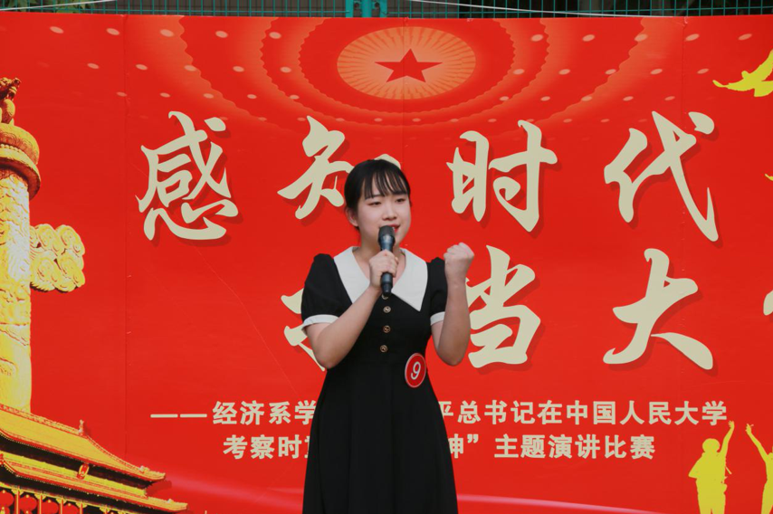 5月14日下午,“感知时代 担当大任”演讲比赛在操场举行,本次大赛是经济系学习“习近平总书记在庆祝建团100周年大会及考察中国人民大学时重要讲话精神”之后的成果汇报,旨在通过学生们的声情并茂的演讲把总书记的殷切期望传播出去,激励更多的青年学子立报国之志,珍惜美好时光,胸怀青春梦想,争做开拓奋进的时代新人。学院领导出席并担任评委,260余名师生代表现场观摩比赛。
