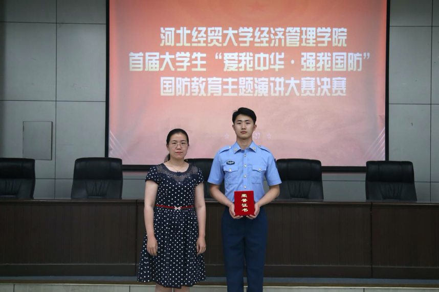 她表示,今天参赛选手中退役复学的大学生身上表现出来坚强的意志、强烈的责任感和舍我其谁的使命感,深深地震撼到了在场的每位师生,她希望同学们把这场精神上的洗礼,化作居安思危的意识和保家卫国的勇气,从心底里萌发应征入伍、报效祖国的愿望,为实现强国梦强军梦担负起经管学子应有的责任。