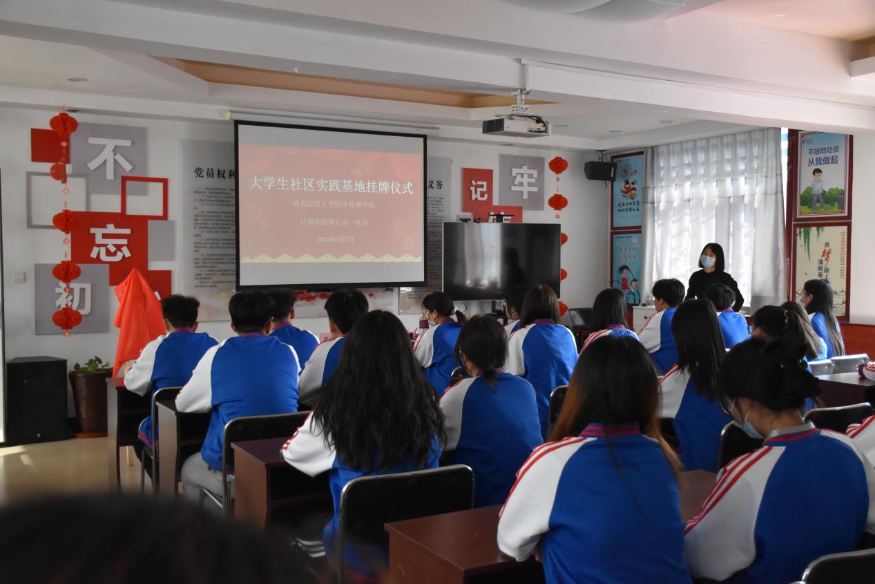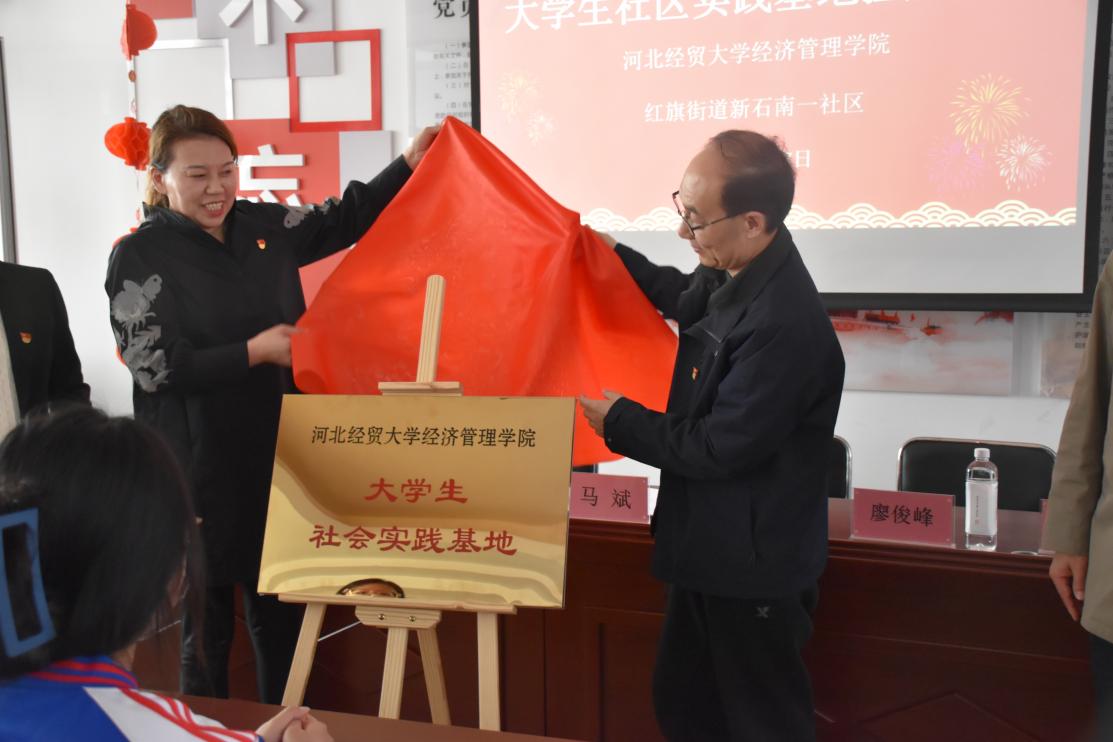 为了积极响应团中央组织大学生走进社会基层的号召,3月7日下午,星空与石家庄市桥西区红旗街道举行大学生社会实践基地揭牌仪式。石家庄桥西区红旗街道党工委书记冯晓芬,学院党委书记马斌,会计系党委书记廖俊峰,会计系党委副书记张艳敏,参加了揭牌仪式,活动由新石南一社区党委书记赵媛主持。