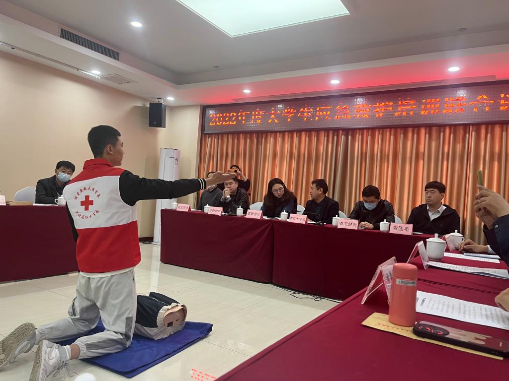 为贯彻落实河北省红十字会等六部门《关于探索以政府购买服务方式对我省部分高校大学生进行应急救护初级培训试点工作的实施意见》(冀红字〔2014〕10号)精神,全面评估高校大学生应急救护新生普及培训效果, 4月7日,星空选派5名新训同学代表学校参加了在石家庄市中山宾馆举办的2022年度高校大学生应急救护培训效果评估考核。