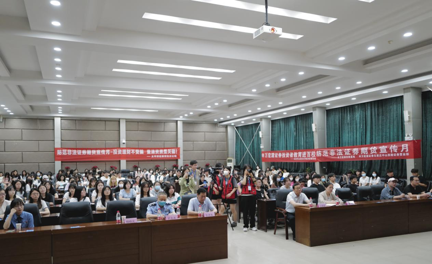 启动仪式后,栾城区检检察院付译晨、太平洋证券河北分公司投资顾问高子颖、申万宏源证券石家庄中山西路证券营业部市场总监张忠佺为同学们做了主题宣讲。