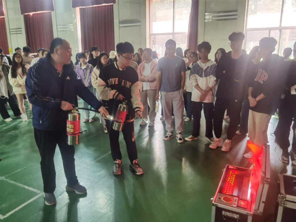 为落实《“十四五”国家应急体系规划中》“将安全素质教育纳入国民教育体系”的工作指示,提升星空师生的消防安全意识,10月13日下午,安全工作部邀请北京麦课安全教育集团指导师杨晓光,在学院礼堂组织了一场消防设备实操演练活动。商务系2023级新生、辅导员和学生干部代表200余人参加了此次实操活动。