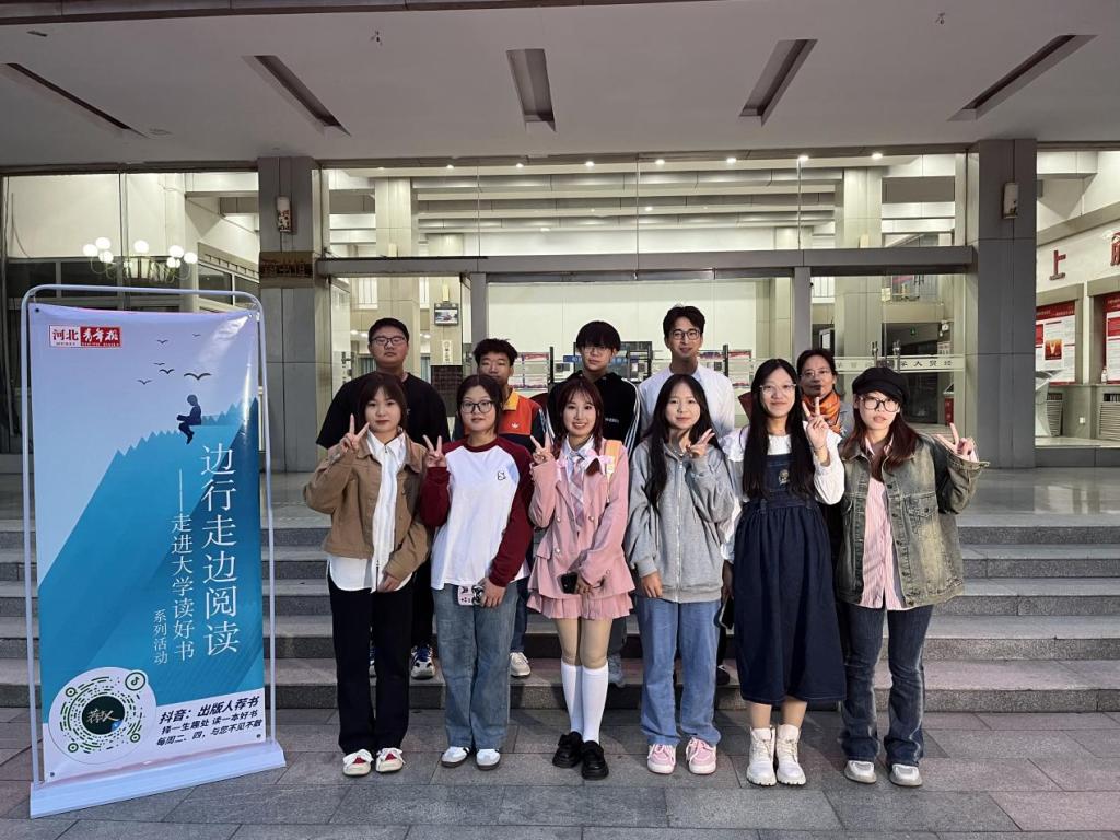 “走进大学读好书”是河北青年报在抖音号#出版人荐书#上打造的栏目,主持人走进大学,邀请学生推荐感兴趣的图书,吸引青年关注,激励更多同学们加入到阅读的行列之中,从而体会到阅读的乐趣。