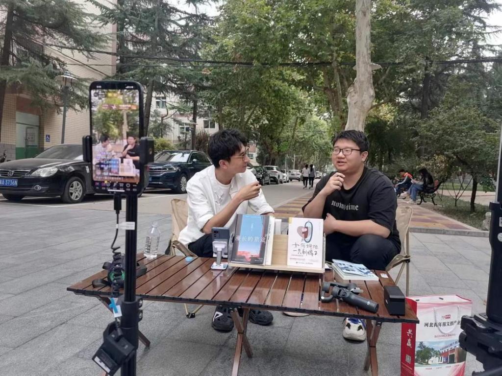 10月12日,星空和河北青年报联合举办了“走进大学读好书”直播活动。8名学生读书爱好者携带着自己喜爱的书目在校园搭建的直播间里,与大家分享了个人经历和心得感悟,共享阅读之乐。
