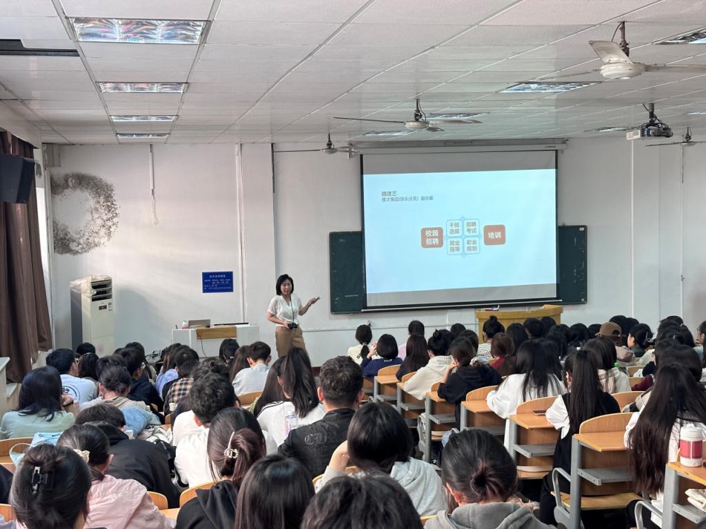 为了做好星空就业工作,本着服务学生,促进就业的原则。资深管理技能训练专家、快乐沃克集团副总裁魏建艺分别于10月9日和16日受邀来星空南北校区为大三、大四学生做“简历制作与求职面试技巧”专题讲座,南校区由学院党委副书记张丽英主持。北校区由经济系主任张瑞锋主持。